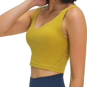 Women’s Yellow V Neck Sports Bra Crop Top Large