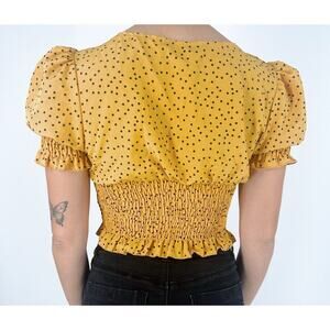 Women's Yellow and Black Dot Smocked Front Tie Top Size XS