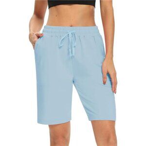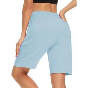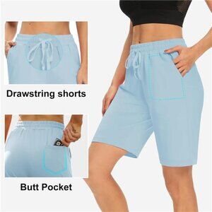Shorts with Three Pockets: Womens yoga shorts have nice two pockets and butt pocket that are large roomy enough for your keys and phone, without falling out. Womens bermuda shorts are not too short and too long, perfect length Inseam-8.66”for exercising. Loose fit long shorts with pockets, linen jogger shorts, plus size shorts for women