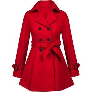 Women's Z Red Zeagoo Winter Trench Coat Faux Fur Lapel Double Breasted