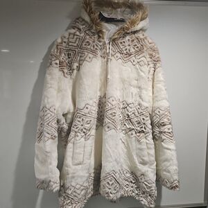 Women's Z Studio Plus Size Faux Fur Print Hooded Jacket. Shipped with USPS Ground Advantage.