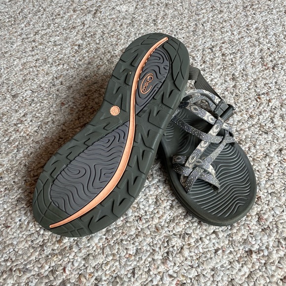 These are in great condition! Only worn a handful of times. These are very soft as far as Chaco straps go. Colors are gray, light purple, and coral.