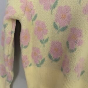 Women's ZARA Small Yellow Pink Collared Floral Sweater Coquette
