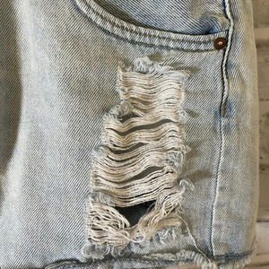 Women’s. ZARA. Jean Shorts. Light wash. Distressed. See photos for distressing. No stains/tears. Size 6.