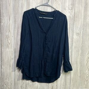 Women’s Zara Basic Blouse Navy Blue Linen Size Xl