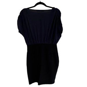 Step out in style with this elegant Zara Basic midi dress featuring a flattering blue and black color block design. With its tailored silhouette and timeless midi length, this dress transitions effortlessly from work meetings to dinner dates. A must-have for any fashion-forward wardrobe!
