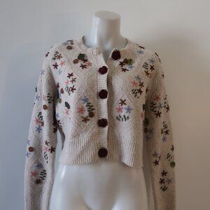 Womens Zara Beige, Multi Embroidered Knit Cardigan Sweater S