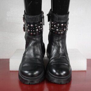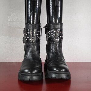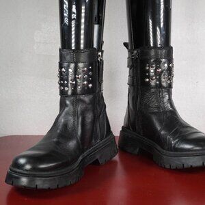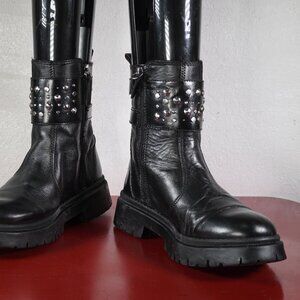 Women's Zara Black Leather Ankle Punk Grunge Fashion Boots Booties 5