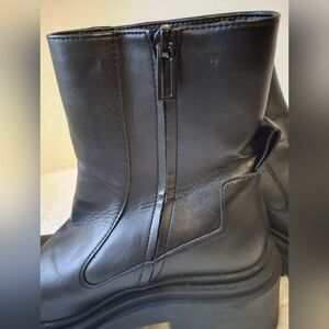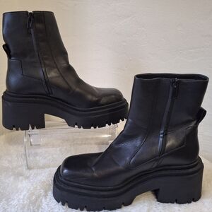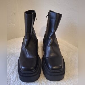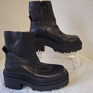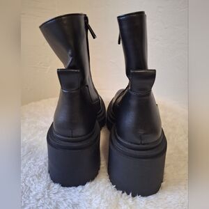 Elevate your look with these bold black platform boots. Stylish and versatile.