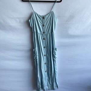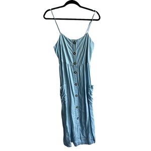 Women's Zara TRF Collection Light Blue Botton Front Midi Dress
