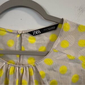 Elevate your style with this Zara blouse featuring a playful yellow and gray color palette. The flutter sleeves and pleated design offer a relaxed, boxy fit, while the bib collar adds a touch of sophistication. Perfect for a casual yet chic look, this top is a versatile addition to any wardrobe.