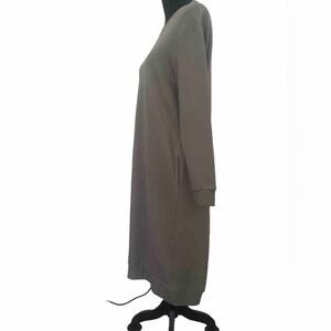 Zara women’s size small oversized crew neck sweatshirt midi dress with pockets, long sleeves and high/low hemline. Taupe color new with tags. Pt. to pt. measures 21” shoulder to front hem 42”