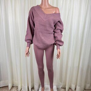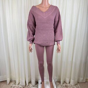 Women's Zenana Two Piece V-Neck Sweater & Legging Set Dusty Rose Pink