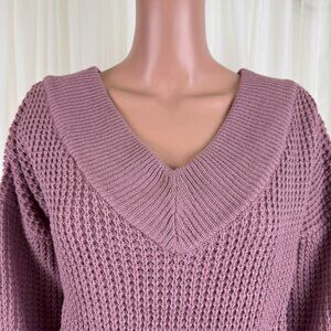 wardrobe. Flattering v-neck waffle knit sweater with balloon