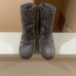 Women’s Zigi Soho Nydia Gray Paisley Velvet Ankle Booties. Size 9.5.