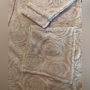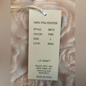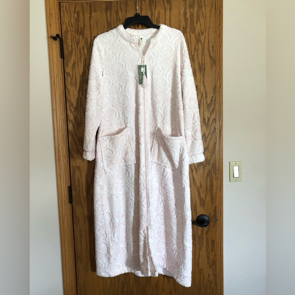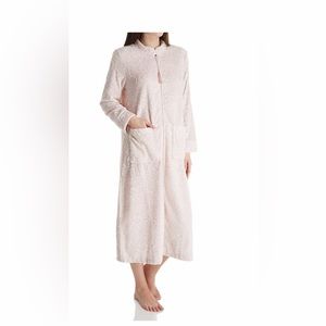 LaCera Embossed Zip Robe has a zip front, patch pockets, and a pretty textured, jacquard pattern knit fleece body. 100% Polyester