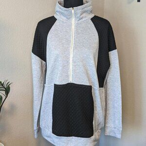 Women's Zip Up Lapel Collar Long Sleeve Pocket Splice Gay & Black