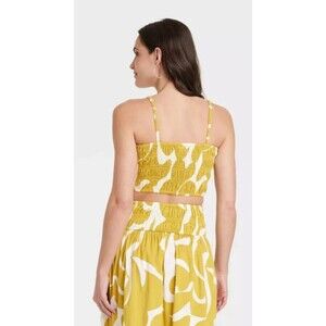 Women's a new day Slim Fit Smocked Tiny Top Yellow Large