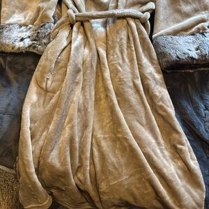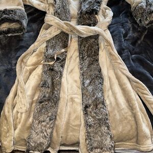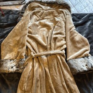 Faux fur plush robe is beige