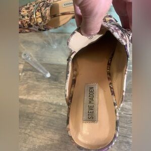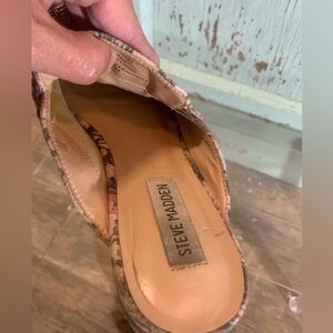 Women’s adorable Steve Madden floral garden print slide on mule size 8.5 some wear noted to inside of shoes, see photos. Otherwise good condition