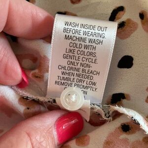 Women’s animal print blouse / tunic. Adjustable cuffed long sleeves. NO SIZE LABEL, fits Med or relaxed Small