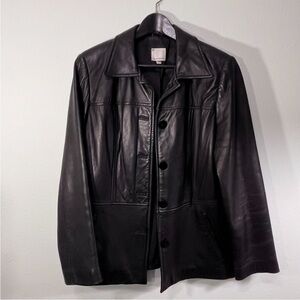 Women's anonymous Black Leather Jacket size Medium with buttons