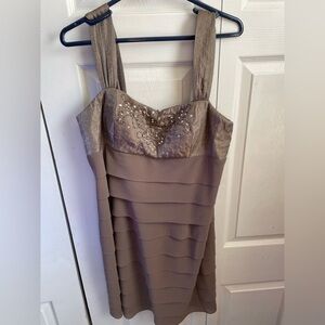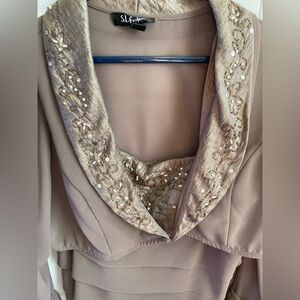 Womens formal dress removable sheer top to leave the dress spaghetti strap. Its like a brown/tan color