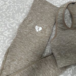 Excellent condition only worn once. Womens best workout set in taupe. Leggings and padded bra to match in size small