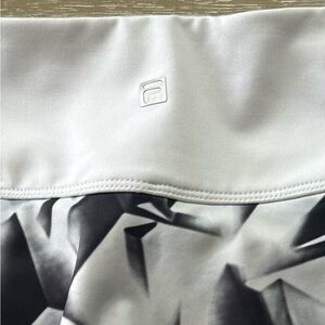 Women’s black and white and gray Fila ruffled tennis/golf skort. Skirt with attached white undershorts. Only worn a few times, always hand washed and hung to dry (I do that with all my athletic wear). Size medium, very comfortable waistband. No holes, stains, or snags.