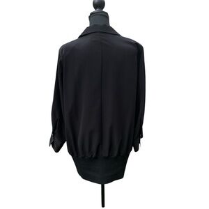 Women’s black button blouse w 2 frontal pockets & waistband by Diane Gilman S L