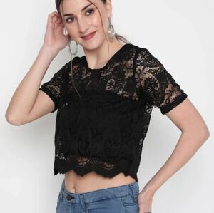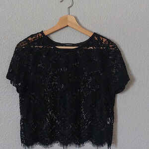 Womens black lace crop top Scalloped Hem Large Whimsigoth Fairy grunge