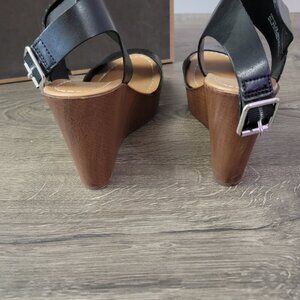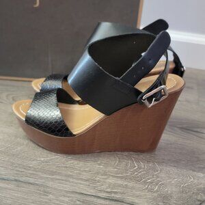 Women's black peep toe wedge heels size 6 by Jore