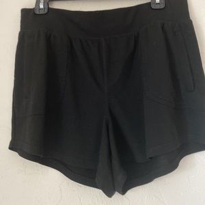 Women’s black shorts athletic work Brand front pockets Wide band on top of pants