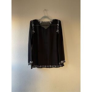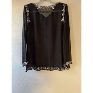 No flaws. Beautiful beading all over the front. Sheer silk. Size xl.