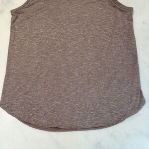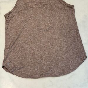Z by Zella light brown and cream variegated pattern, stretchy tank top, scoop neck 93% Poly 3% spandex, large loose fitting, big armholes, Wear this layered or with sports bra underneath, nice stitching detail on back, flattering rounded hemline, very good condition