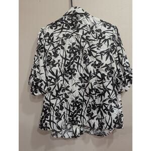 Women's black & white roll tab sleeve collared button up linen shirt plus size 16W Westbound Woman spring summer neutral lightweight gauzy breezy vacation Florida California tropical getaway resort wear yachting cruise excursion