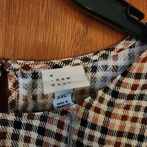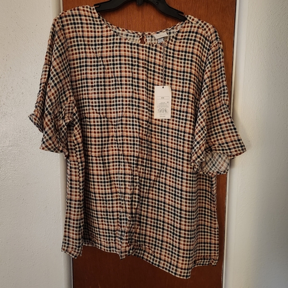 women's blouse brand new w tags ANew Day brand size XXL, flutter short sleeve with 1 button closure on the back, plaid in style