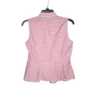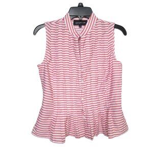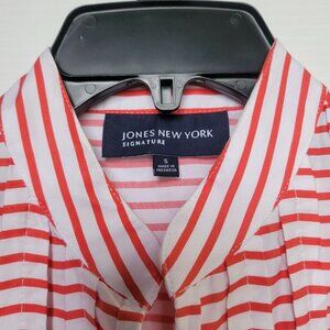 🤩Women's blouse Size S Jones New York sleeveless Striped White Red button front