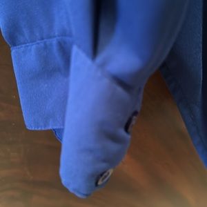 Women’s Daniel Rainn blouse size M, color blue. 100% polyester. It’s long