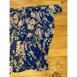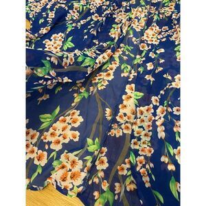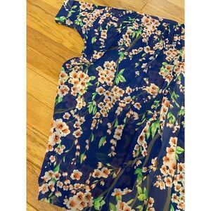 Women's blue oversized short sleeve Floral Sheer open Kimono Cardigan sz medium