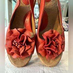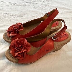 Women’s b.o.c. Cork Wedges, Coral Leather Size 9