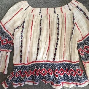 This shirt is not free people, just stated for exposure. Has a very similar look and style as free people. Guaze like material. Only worn once, just didn’t like the style on me. Fits like a medium but it’s a large