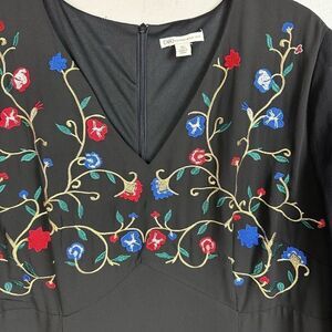 Women’s boho embroidered black chiffon fit flare cocktail plus size 16 dress