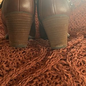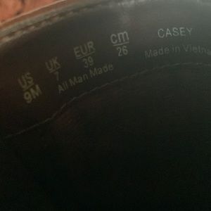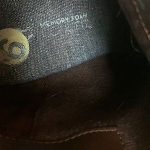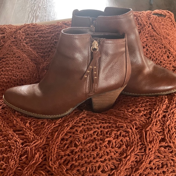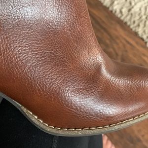 Woman’s brown boot with gold accent zipper. Size 9. Brown in color, gently used. Memory form insert. Dr. Scholl’s brand. Small markings on back of both heels but other than that great shape!