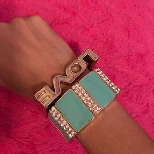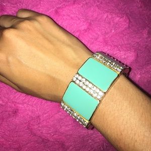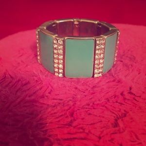 Turquoise bracelet with diamond detailing! Stretchable bracelet with gold trimming! Not new but still in great condition!