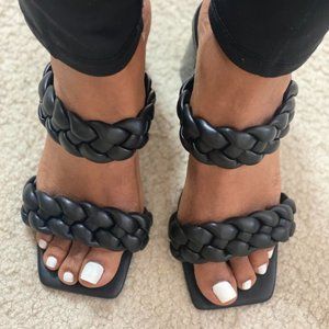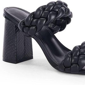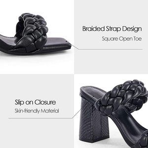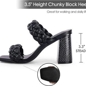 ~Square open-toe design, stylish woven cross strap upper and steady block heels make these sandals fashion& comfortable