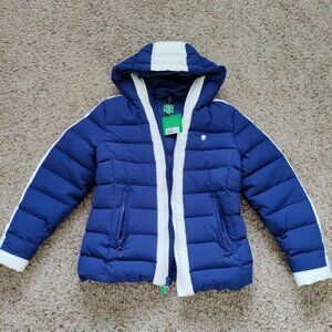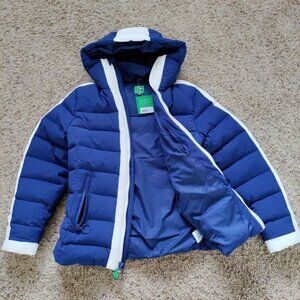 This brand new down ski jacket is in excellent condition with tags from Neve by CK Bradley. Navy blue color, 90% duck down, super warm, light weight, size M. It is good for skiing, travelling and casual wear, retail for $500. $50 for the jacket and a free headband .