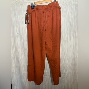 Women's burnt orange wide leg Tie-Waist Pants NWT
