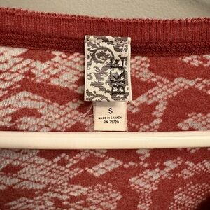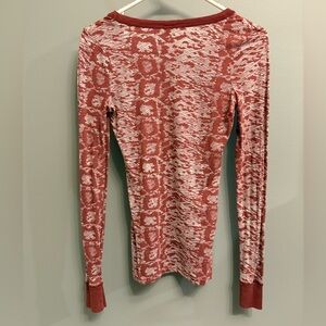 Women’s burnt red patterned BKE long sleeve v-neck fitted top - size small