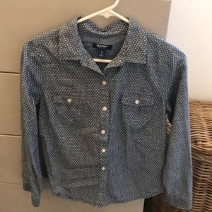 Chambray with white polka dot button down